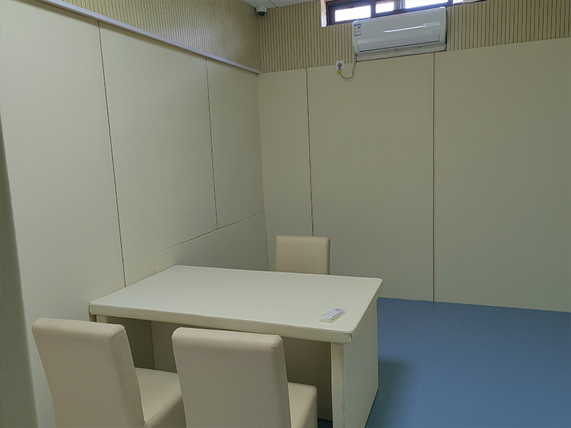 审讯室是一个提审犯人的场所,为了防止犯人情绪激动撞墙自杀,自残,发生意外流血事件,所以需要对墙面进行防撞处理,审讯室防撞软包要求防撞系数高,回弹性好,常用规格为1200*2400mm,厚度有17/20/25mm,检验报告:B1级阻燃,E1级环保。吸音声谱高,不产生回音、噪音。材质均匀坚实,富有弹性、 韧性、耐磨、抗冲击、不易划破,易切割、施工简便、性价比高。